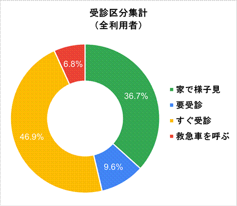 約31%が家での様子見・要受診(通常診療時間内に受診)を選択したことは、「即受診に至る前の判断を支える医療支援」という新たな価値を提供したといえます。