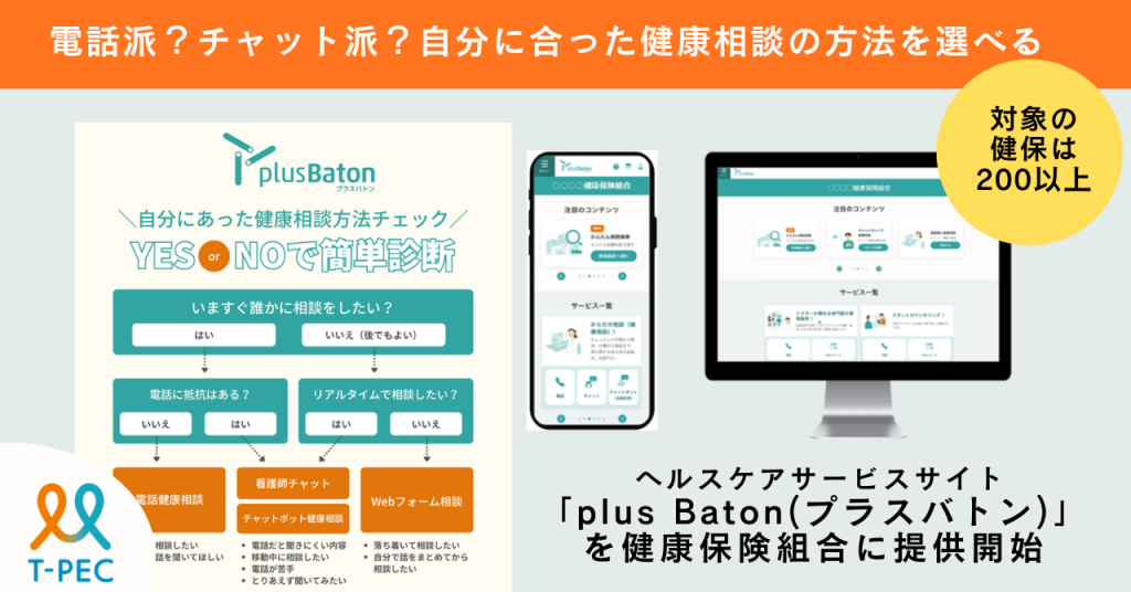 ティーペック株式会社(本社:東京都台東区、代表取締役社長:鼠家 和彦)は、24時間健康相談、心理カウンセリング、セカンドオピニオン手配サービスなどを一元化したヘルスケアサービスサイト「plus Baton(以下、プラスバトン)」について、利用対象を拡大し、2026年4月より健康保険組合の被保険者および被扶養者向けに提供を開始しました。